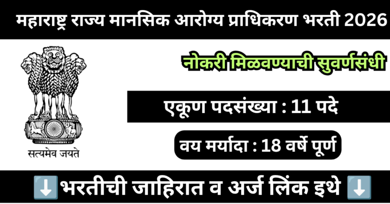Read moreमहाराष्ट्र राज्य मानसिक आरोग्य प्राधिकरण मध्ये 11 पदांसाठी भरती | Maharashtra State Mental Health Authority Bharti 2026