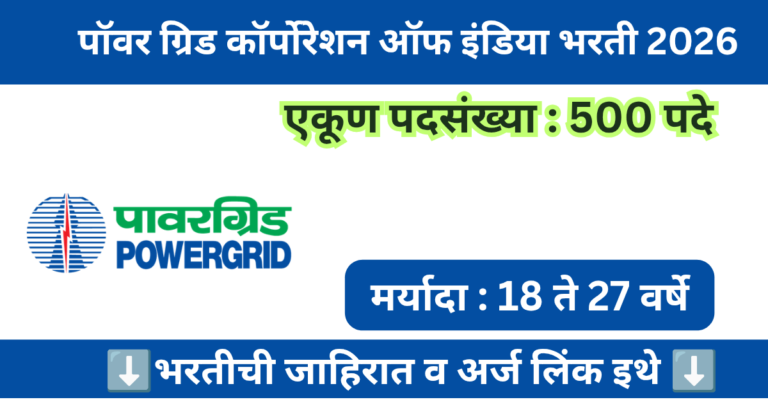 पॉवर ग्रिड कॉर्पोरेशन ऑफ इंडिया मध्ये 668 पदांसाठी भरती 2026 | POWERGRID Bharti 2026
