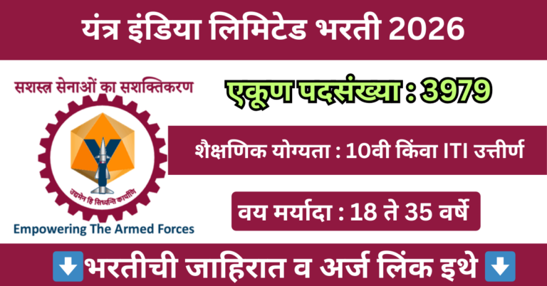 यंत्र इंडिया लिमिटेड मध्ये 3979 पदांसाठी बंपर भरती जाहीर 2026 | Yantra India Limited Bharti 2026